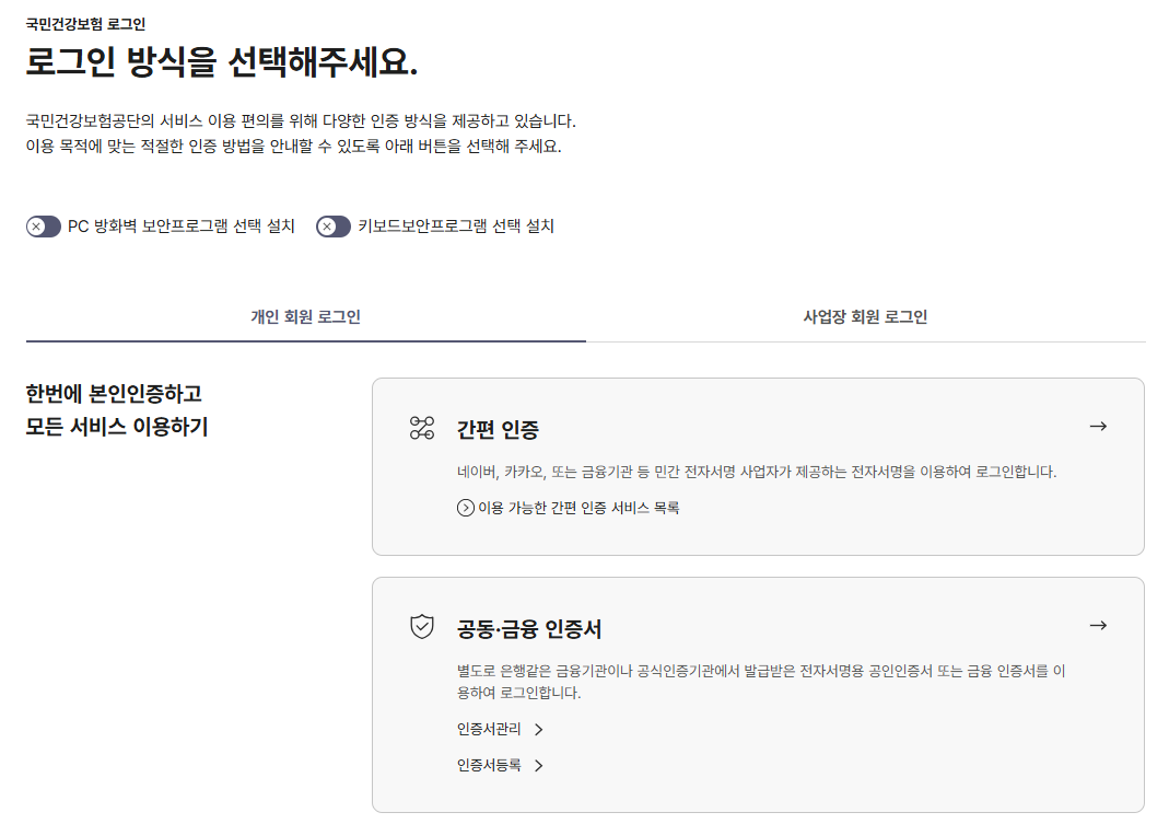 1. 국민건강보험 홈페이지 이동